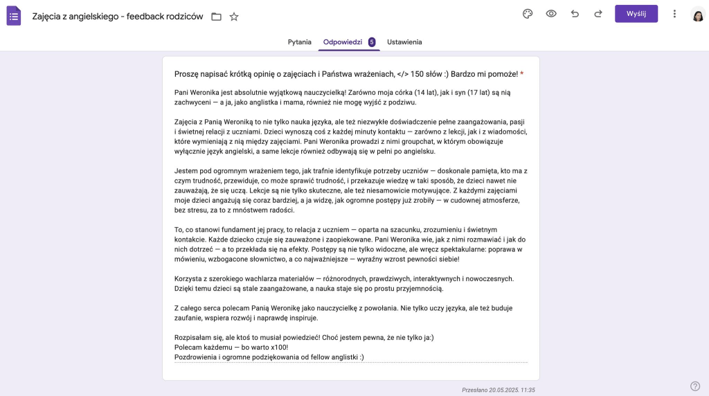 Dużo się o Nas mówi! Ale proszę nie wierzyć nam na słowo, tylko zobaczyć, co mówią o Nas rodzice i uczniowie: